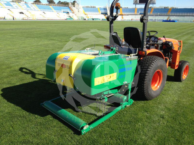 Aerator uniwersalny włoskiej marki model AGR 120 o szerokości roboczej 120cm. Posiada możliwość założenia 3 rodzai noży – nóż głęboki skaryfikujaćy o długości 30cm (25cm roboczej), nóż krótki skaryfikujący o długości 17cm (12cm roboczej) i szpila wgłębna, pusta o długości 25 do wyciągania i poluzowywania nawierzchni o długości ok.22cm (ok.14 cm roboczej ). Odległości między dyskami na których zamocowane są noże 75mm. Ilość noży 45szt. Waga własna maszyny 240kg. Maszyna bez przekładni.