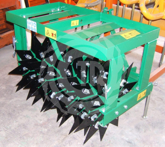 Aerator – skaryfikator włoskiej marki model mod.1000 o szerokości roboczej 100cm. Waga własna maszyny 240kg. Liczba całkowita szpil – 64szt. Maszyna napędzana na W.O.M. ciągnika o prędkości 540 obr./min