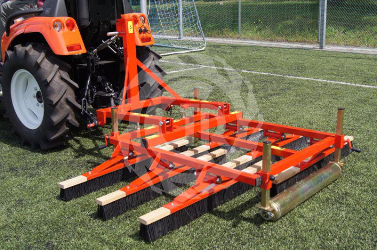 Szczotka do tawy naturalnej – zaczepiane na tylni TUZ ciagnika. Szerokość robocza 200cm. Trzy rzędy szczotek wahadłowo zamontowanych na ramie. W sumie 6 szczotek. Maszyna posiada regulacje głębokości pracy poprzez dwa wały podporowe. Waga własna maszyny wynosi ok. 80 kg.