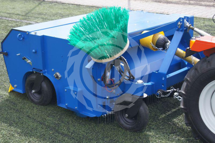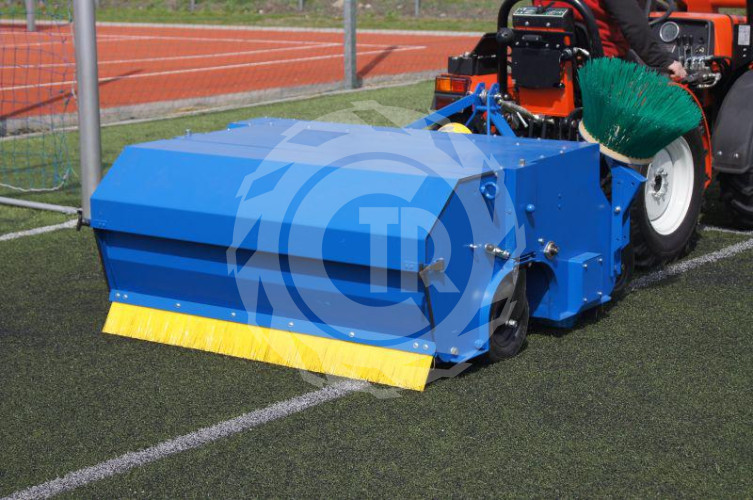 Zamiatarka uniwersalna model Turf Cleaner 160 do boisk z nawierzchnią sztuczną oraz z możliwością zamiatania powierzchni twardych (chodników, parkingów). Produkcja polska. Zamiatarka osadzona na 4 kołach jezdnych z regulacja głębokości pracy zgrzebła. Wyposażona w system przesiewający granulat od zanieczyszczeń poprzez sito o oczkach 5,5 mm. Zamiatarka wyposażona w tylny zbiornik na zanieczyszczenia. Napędzana na wałek przekaznika mocy o prędkości 540 obr./min Masa własna maszyny ok. 340kg. Szerokośc robocza 150cm. W standardzie maszyna wyposażona również w platformę pełną przeznaczoną do zamiatania ulic